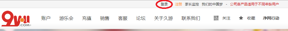 1.9youTOPページ上段にある登录よりログインをします。 (ID・パスはガンオンと同じです。) 9you公式 http://www.9you.com/